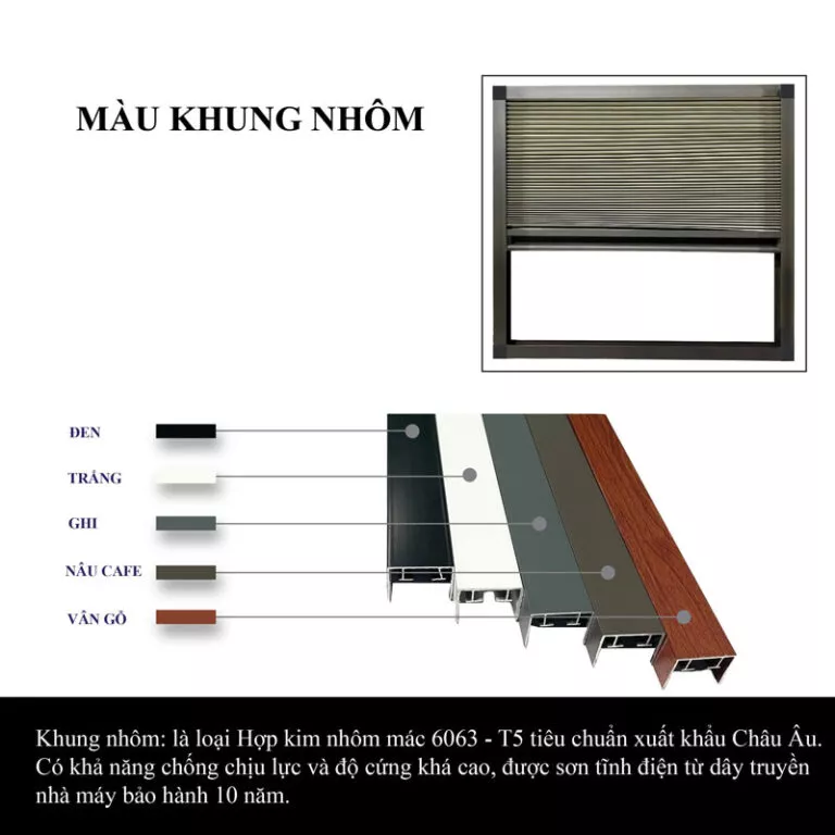 - Khung nhôm: Rèm tổ ong được trang bị một sự bao bọc rất tốt. Bộ khung của vách ngăn tổ ong được chế tạo vật liệu nhôm sơn tĩnh điện công nghệ cao. Có tác dụng chống ăn mòn, ngăn tình trạng oxy hóa, han gỉ khi tiếp xúc thường xuyên với không khí. Bạn có thể lựa chọn hệ nhôm 27, 30, 32, 40 phụ thuộc vào kích thước của vách ngăn.